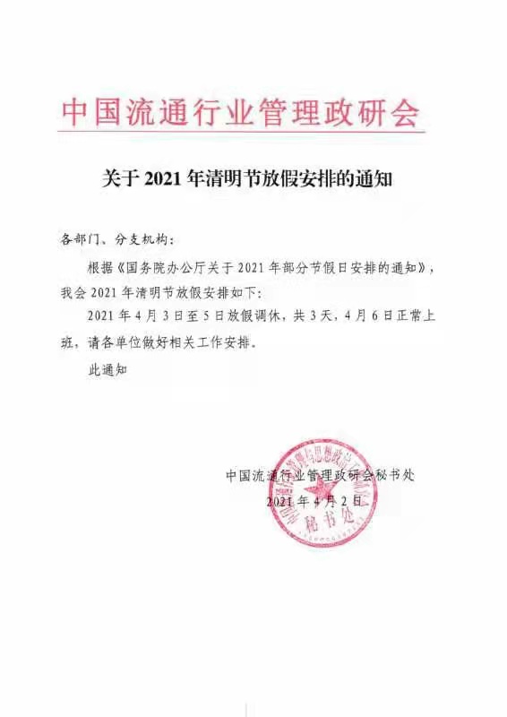 关于2021年清明节放假安排通知